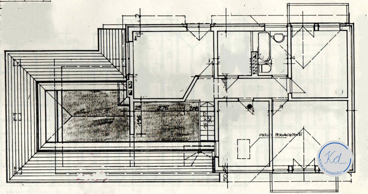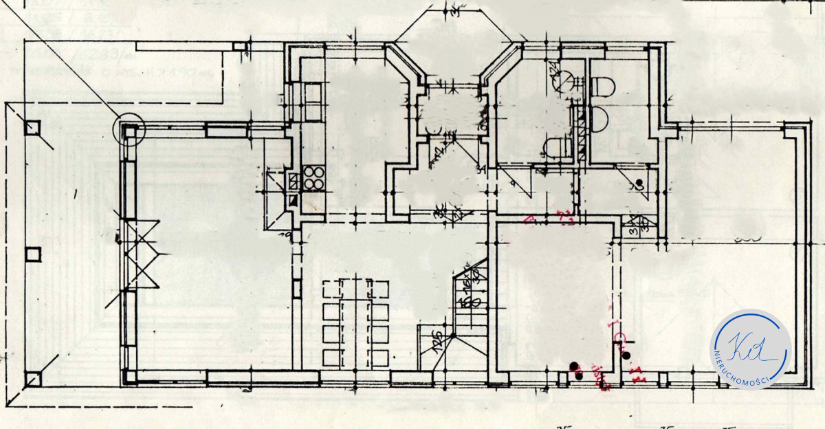 Dom o niestandardowej bryle, dwukondygnacyjny, z wbudowanym garażem, o łącznej powierzchni 184,5m2, postawiony w 2004 roku.