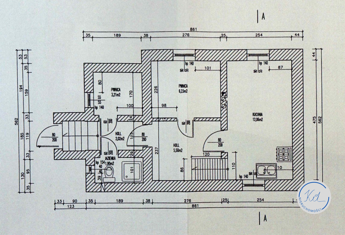 Na parterze znajduje się duży hol, oraz dwa pokoje. W przyziemiu znajduje się mały hol, łazienka z wc, 2 pomieszczenia i kuchnia.